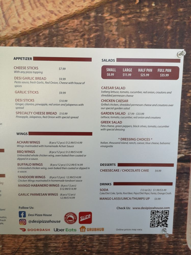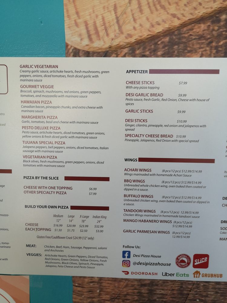 Featuring options for delivery, takeout, catering, and even happy hour specials, Desi Pizza House caters to a variety of preferences. Customers particularly love the Malai Paneer pizza and Buttery Chicken Pizza for their delicious flavors and unique combinations. Whether you're a fan of Indian cuisine or simply love pizza, Desi Pizza House provides a one-of-a-kind dining experience that is sure to leave you craving more.